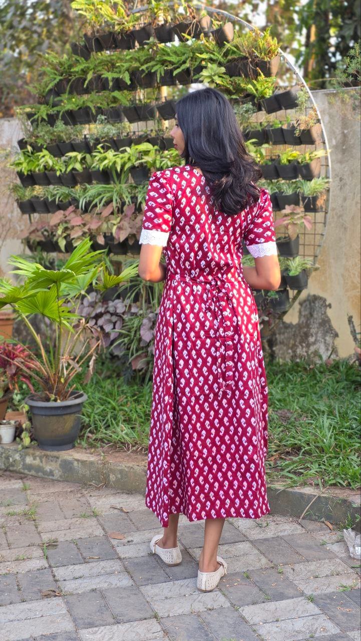 Gentle hand wash only. Use mild detergent. Do not soak or scrub. Dry inside out in shade; avoid direct sunlight. Block-printed fabrics may bleed slightly due to natural dyes-this is normal.
