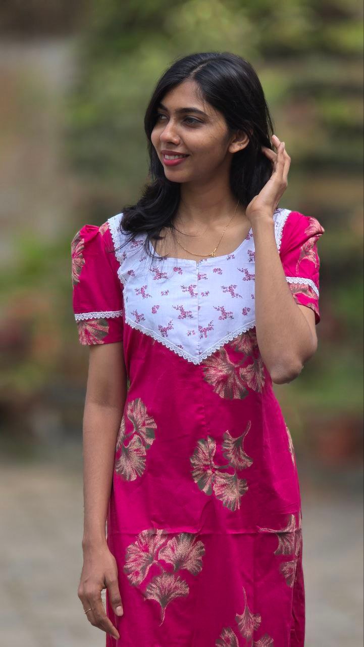 Gentle hand wash only. Use mild detergent. Do not soak or scrub. Dry inside out in shade; avoid direct sunlight. Block-printed fabrics may bleed slightly due to natural dyes-this is normal.