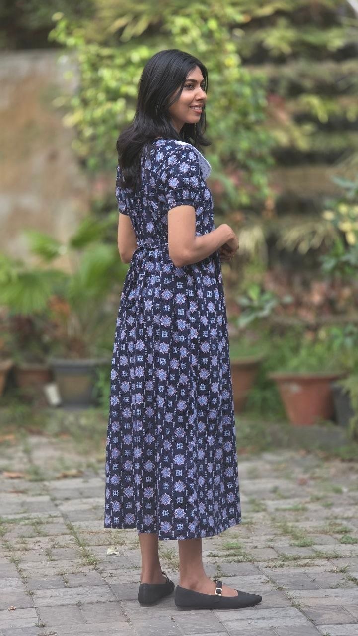 Gentle hand wash only. Use mild detergent. Do not soak or scrub. Dry inside out in shade; avoid direct sunlight. Block-printed fabrics may bleed slightly due to natural dyes-this is normal.