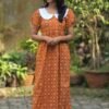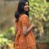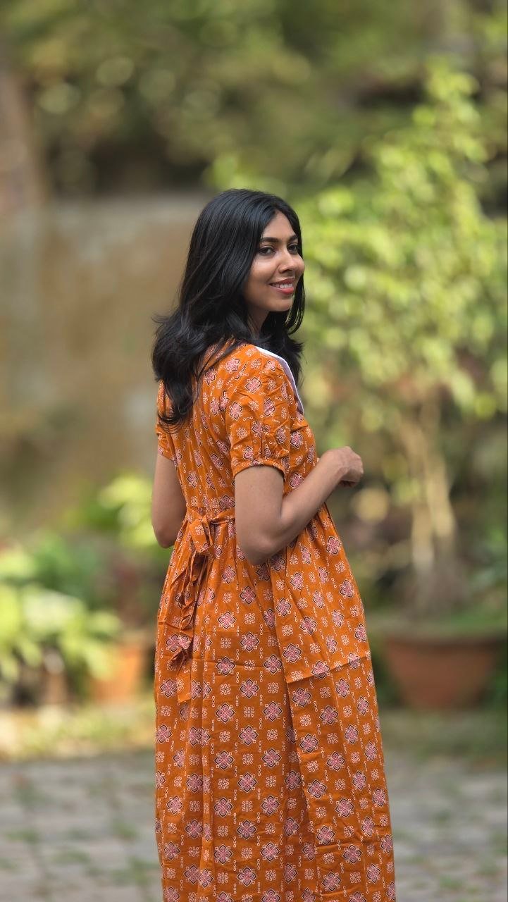 Gentle hand wash only. Use mild detergent. Do not soak or scrub. Dry inside out in shade; avoid direct sunlight. Block-printed fabrics may bleed slightly due to natural dyes-this is normal.