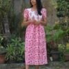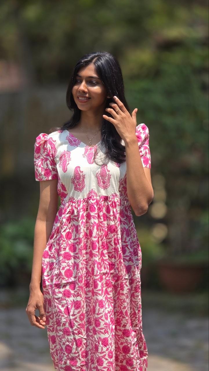 Gentle hand wash only. Use mild detergent. Do not soak or scrub. Dry inside out in shade; avoid direct sunlight. Block-printed fabrics may bleed slightly due to natural dyes-this is normal.