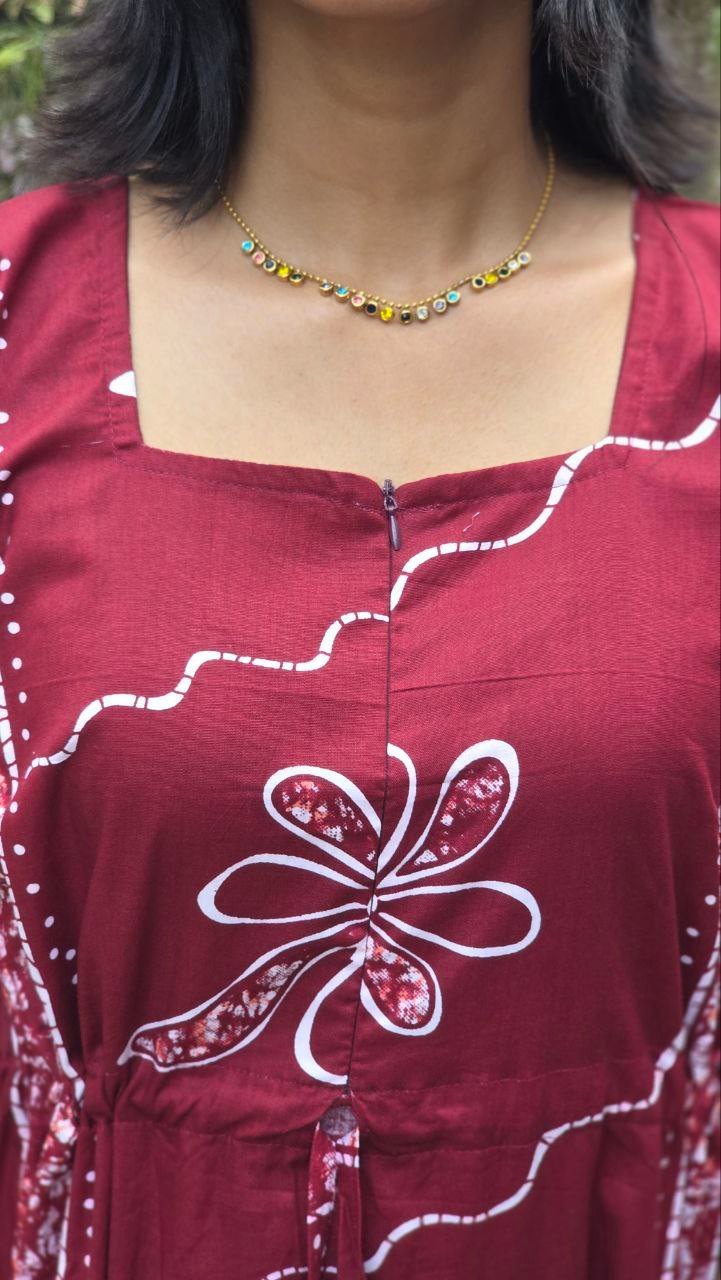 Gentle hand wash only. Use mild detergent. Do not soak or scrub. Dry inside out in shade; avoid direct sunlight. Block-printed fabrics may bleed slightly due to natural dyes-this is normal.