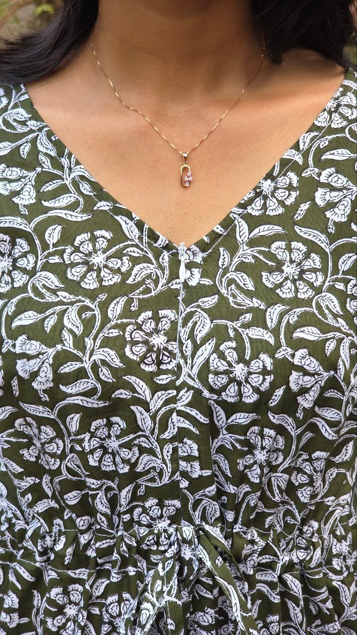 Gentle hand wash only. Use mild detergent. Do not soak or scrub. Dry inside out in shade; avoid direct sunlight. Block-printed fabrics may bleed slightly due to natural dyes-this is normal.