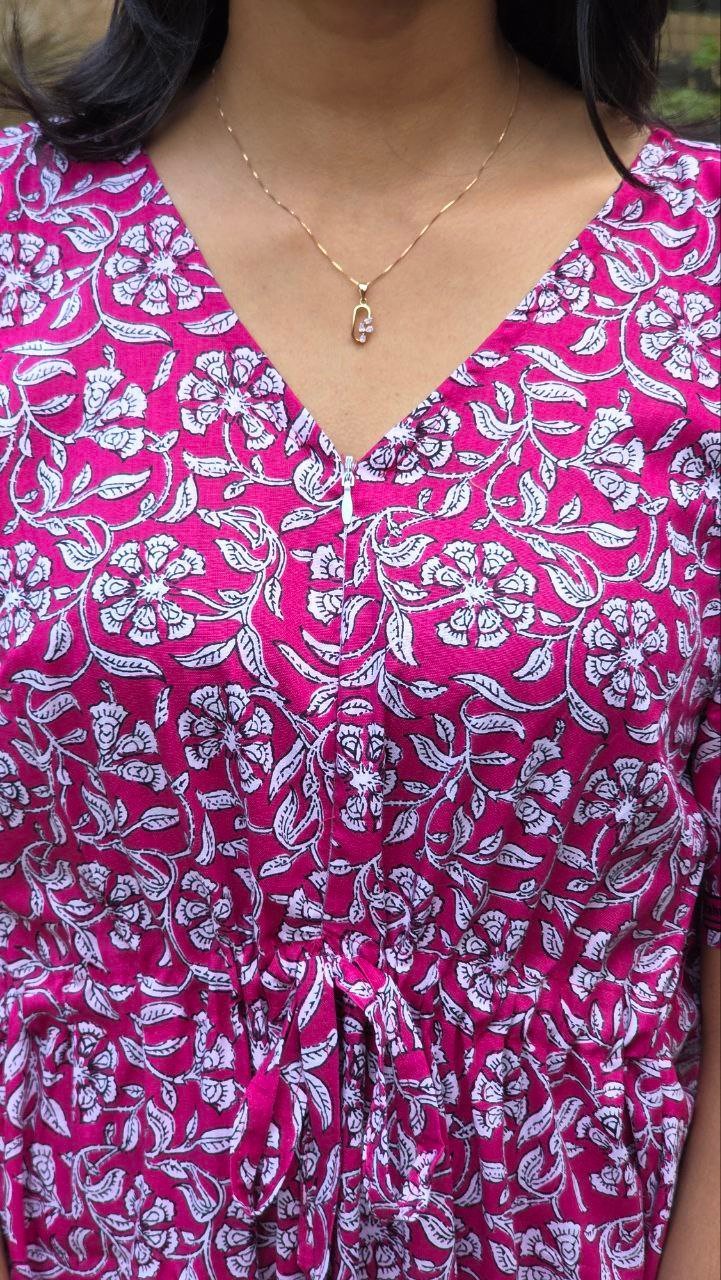 Gentle hand wash only. Use mild detergent. Do not soak or scrub. Dry inside out in shade; avoid direct sunlight. Block-printed fabrics may bleed slightly due to natural dyes-this is normal.