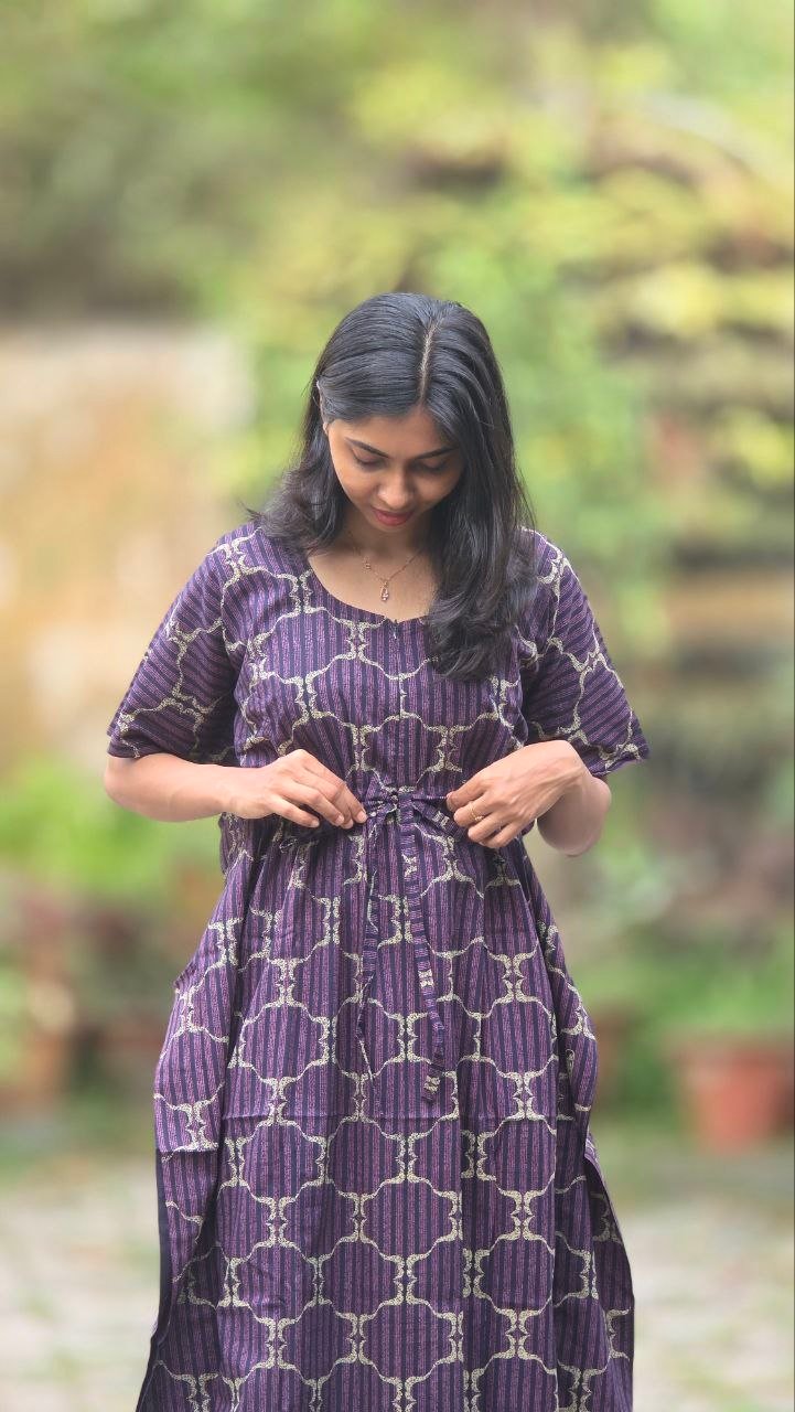 Gentle hand wash only. Use mild detergent. Do not soak or scrub. Dry inside out in shade; avoid direct sunlight. Block-printed fabrics may bleed slightly due to natural dyes-this is normal.