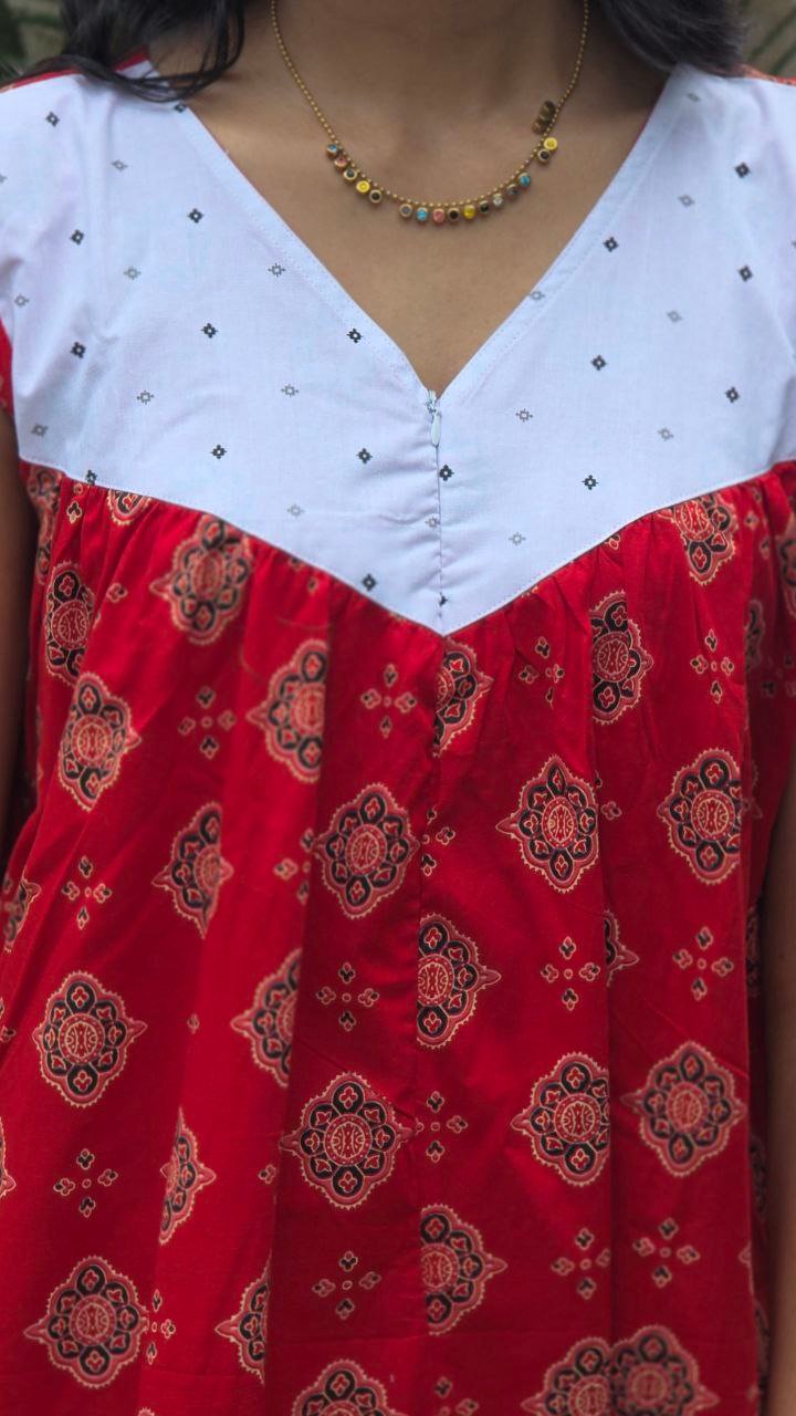 Gentle hand wash only. Use mild detergent. Do not soak or scrub. Dry inside out in shade; avoid direct sunlight. Block-printed fabrics may bleed slightly due to natural dyes-this is normal.