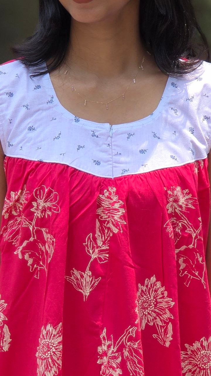 Gentle hand wash only. Use mild detergent. Do not soak or scrub. Dry inside out in shade; avoid direct sunlight. Block-printed fabrics may bleed slightly due to natural dyes-this is normal.